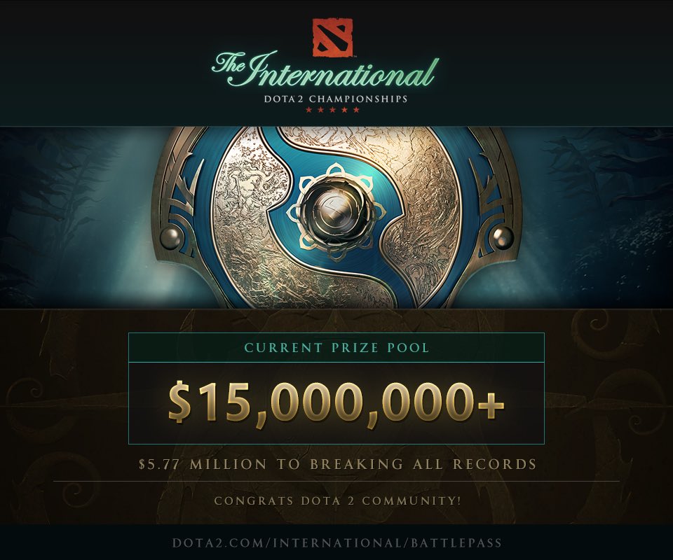 Total hadiah dalam kompetisi tahun ini dikabarkan telah mencapai lebih dari 15 juta dollar. Ini bisa saja naik lantaran banyaknya kontribusi dari penggemar/pemain yang turut andil memompa besarnya hadiah. Hingga informasi ini diturunkan, dota prizetrac mencatat terdapat hadiah awal sebanyak 1 juta 6 ratus ribu dollar prize pool (PP) dengan tambahan $13.415.003 PP sehingga mengalami kenaikan sebanyak 838,44%.